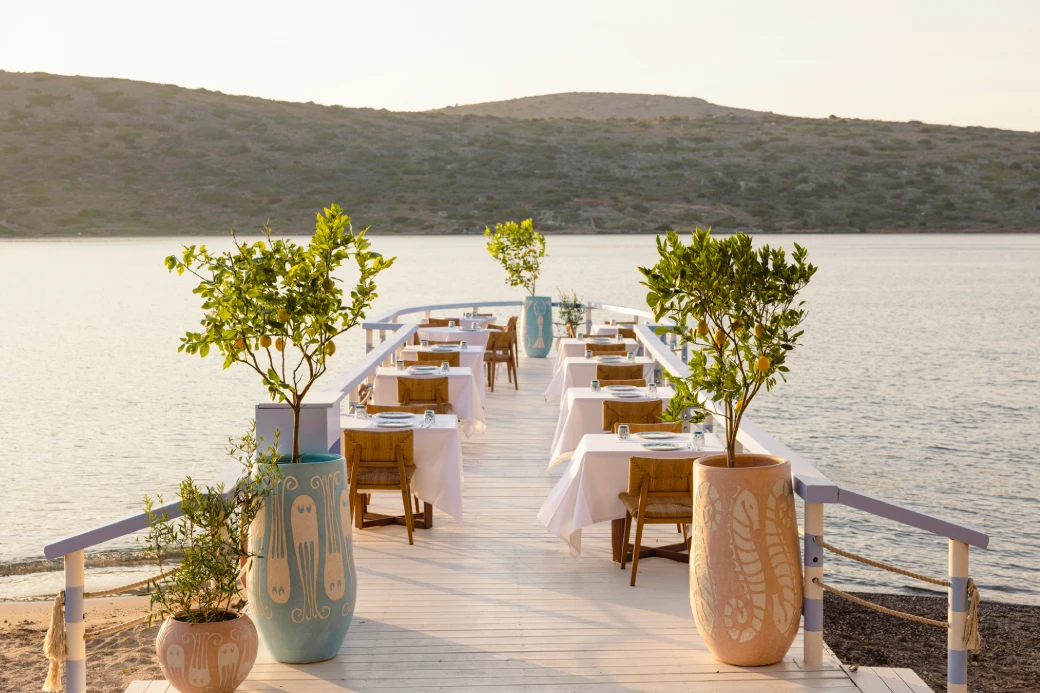 The exclusive beach concept came to life through whimsical design by Vincent Darré, featuring pastel elegance and curated beachside details. Guests discovered signature prints, elevated comfort cuisine, and bespoke cocktails, in a playful blend of Saint-Tropez vibes and Cretan soul.