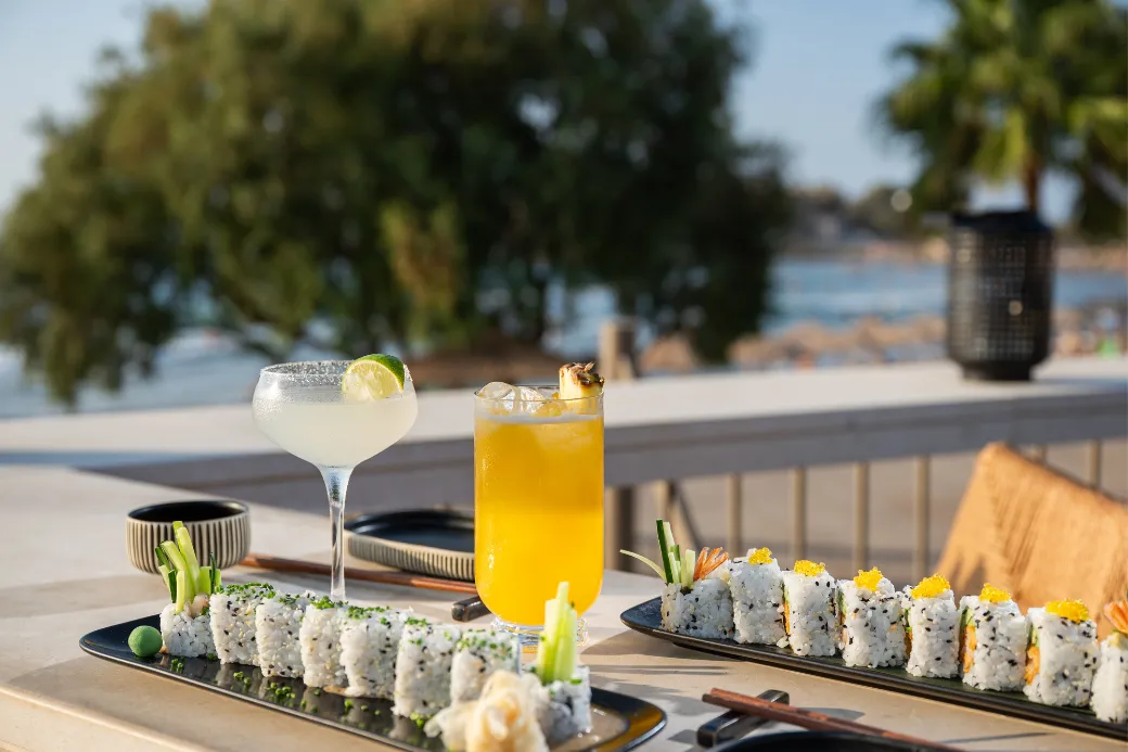 Raw Bar is an elegant all-day cocktail and champagne bar, offering original creations by expert mixologists paired with eclectic bar snacks and fresh sushi, now served throughout the day.