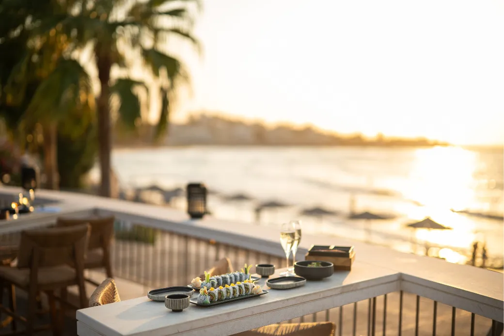 In the evening, Raw Bar transforms into a sophisticated dining destination, serving refined Japanese cuisine that perfectly complements the setting and ambiance.
